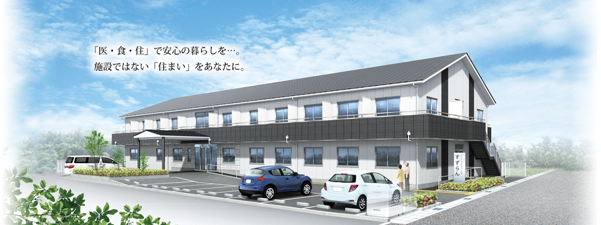 サービス付き高齢者向け住宅「すずらん」は、高齢で毎日の生活に不安を感じる方や介護・医療が必要な方に、「自宅で暮らすような安心できる環境を」との想いから誕生しました。